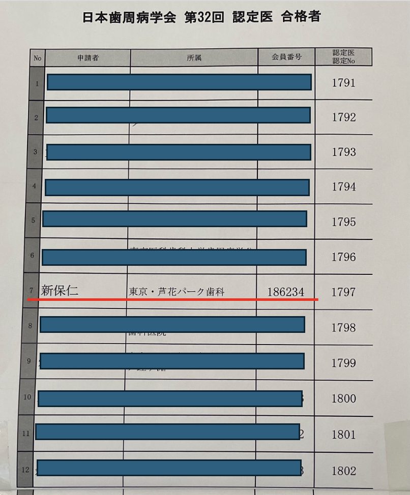 現在日本歯周病学会の認定医は、全国に1,800人ほどで、歯科医師全体の2%程度しかいないようです。